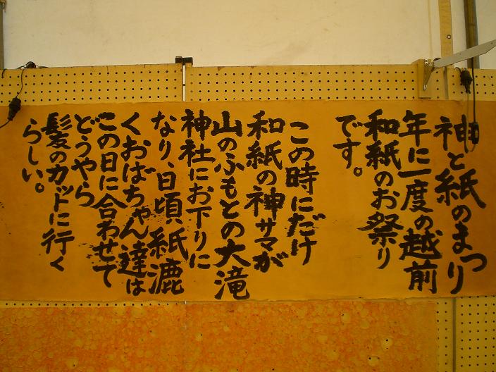 And the old ladies who make paper and used to make paper in Echizen are supposed to have their hair cut by the time the festival starts ( they always say that they have to be well-dressed before the gods coming down. Please check their hair ! ).