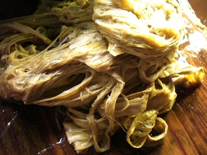 The lady, called ` Hana-chan`, is checking cooked kozo.
