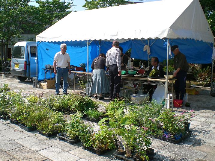 Outside of Udatsu, the members of the plant club are selling their works.