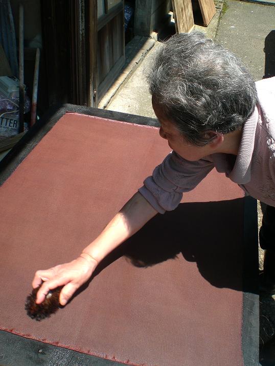 It is her fourh time to polish it with persimmon's astringency, starting in the end of last year.