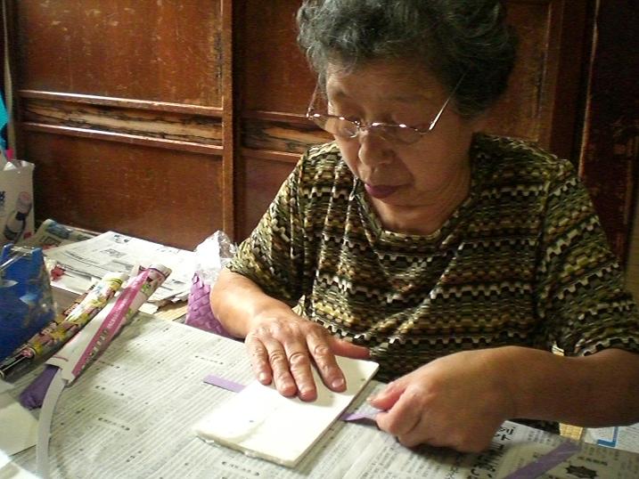Fusae-san, 82, of Jiyomon, is doing her side job.