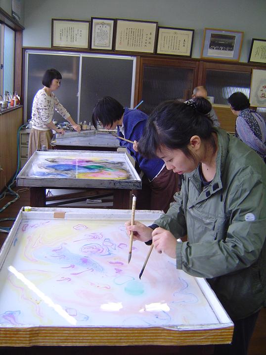During the Chinese artists stay, they experienced Echizen marbling paper.