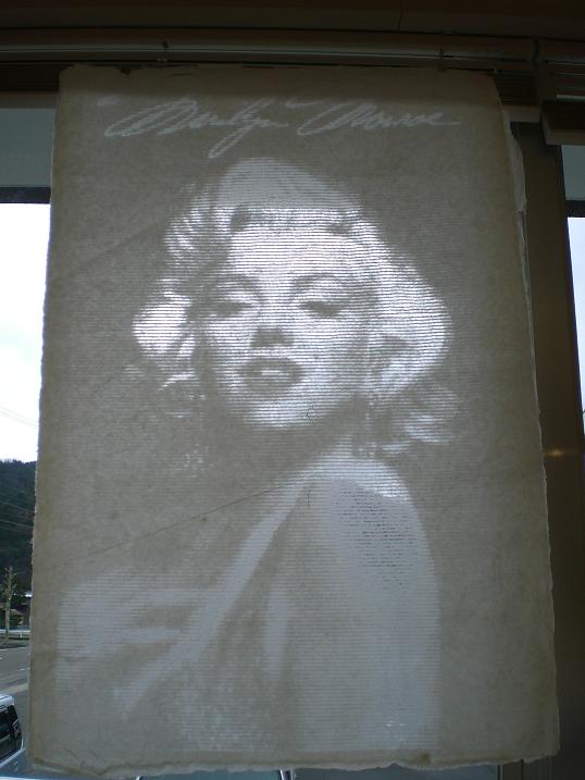 This paper was made at Jiyomon Paper Studio a long time ago. We cannot sell this paper, but you can order any figure or design using this technique. But first, you have to have your own design sheet on the silk, sha, which costs a certain amount of money.