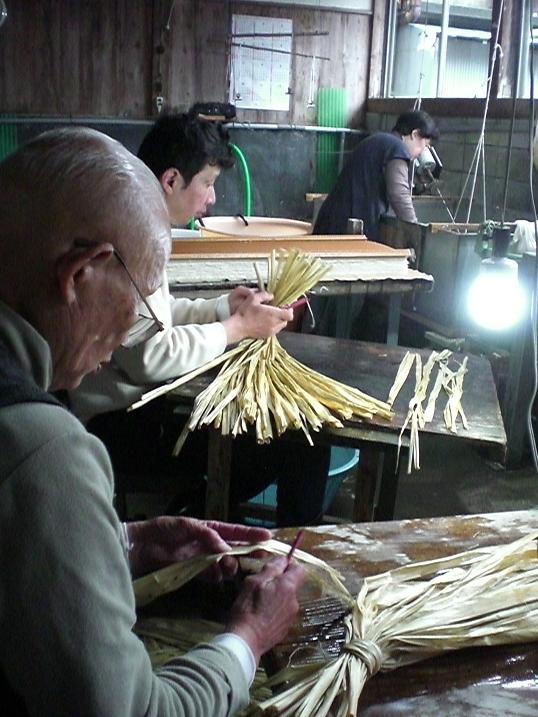 He was checking Kozo before cooked with his son whereas his wife was making paper.