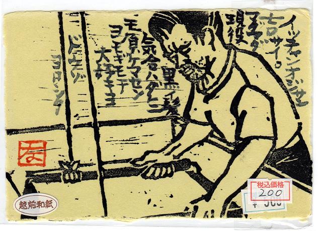 My friend found this post card being sold at Kami Festival last May. The price was 200 JPY.... 50JPY for handmade post card made in Jiyomon Paper Studio, and I made the woodblock and printed it with a short poem. It should have cost more than 200 yen. But of course I'm not famous enough and haven't tried hard yet to let people know about my work.