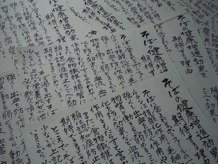 I've just finished writing stories about `Soba Noodles `, buckwheat noodles. It says something about soba, like how it is good for your health. I wrote so many times that I almost remember how it goes. No wonder they say you can remember things by writing !