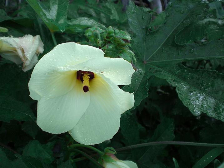 Tororo-aoi, the medium aid now has its flower in my garden. The color combination is just perfect; white, yellow and a little red ! Do you remember how it was when I planted this spring ? here