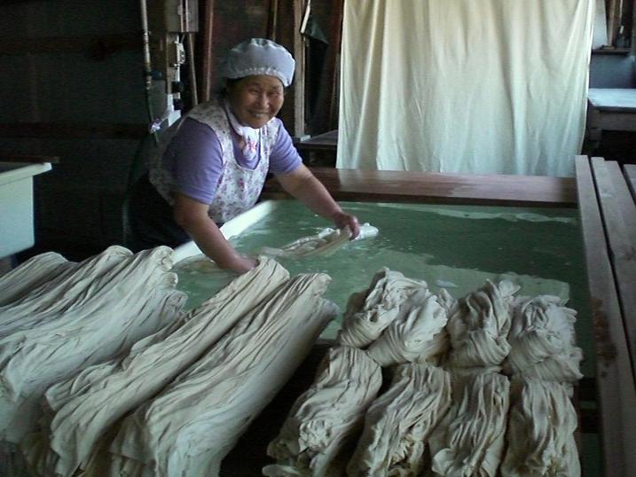 Shi-chan is washing the cloth used to be put between the papers. It's always nice to talk with her.