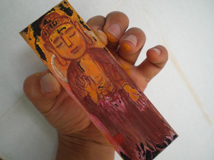 I sent this to a contest in Odawara, whose purpose is to prevent the wood for kamaboko from bring wasted. This time I enjoyed drawing not on paper but on the wood praying for peace in the world...