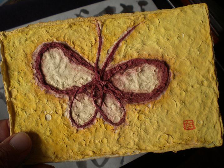 This butterfly seems to be happy in the paper. I'm glad it looks alive.
