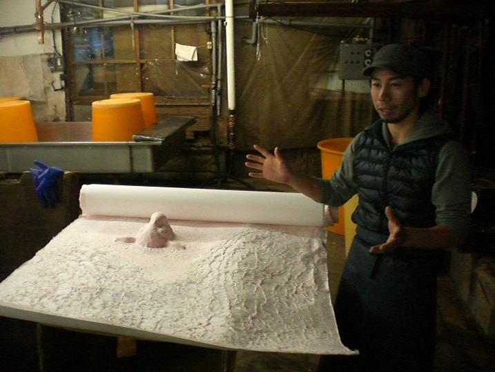 He says he enjoys designing and making paper. He didn't know about papermaking at all before, but thanks to the other artisans in Echizen, of course including his family members, he's been learning a lot how to create new paper designs.