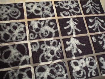 Here in the village, there is no mood for Christmas, but on the radio you can hear some music for it. Remembering what Mary told me, I made post cards with those colors.