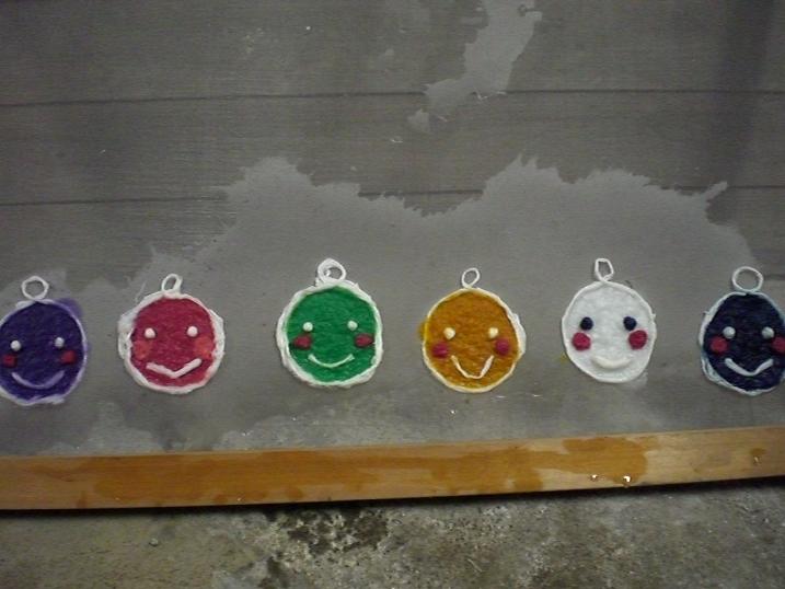 My friend in Switzerland asked me if I have another color of Nico Nico, smiling faces I made using only kozo fiber.