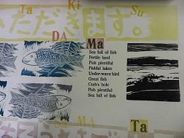 Before we have meals in Japan, we say ` Itadaki masu `, respecting each life from food, and after, we say ` Gochi so-u sama ` appriciating each life from food again. Some foreigners say those are just the same with ` Bon apetit ` , but actually not. .... Joop helped the idea for me to make a print with the words.