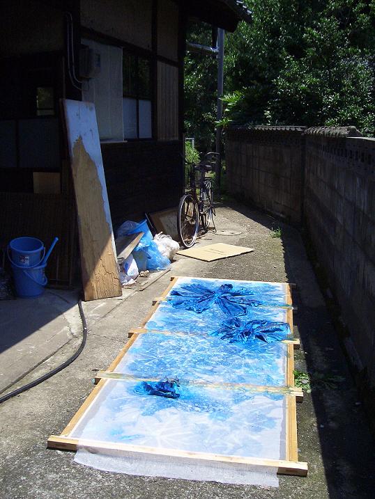 I have to make art work outside if it is a big one. So yesterday having made sure the weather would be very fine all day, I got started from the early morning....