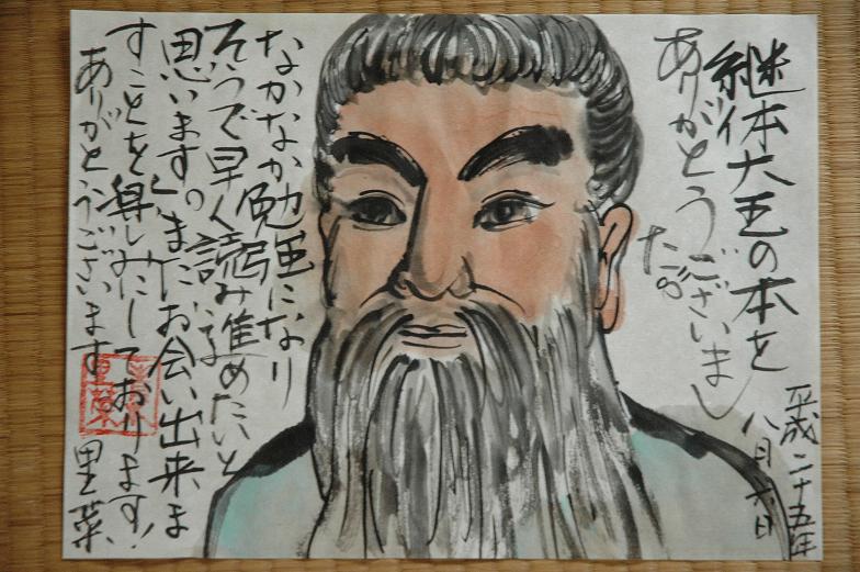 I'm still studying about him. So I feel very grateful for the two books, so I sent a ` Thank you Letter ` to her drawing ` Keitai ` with ink.