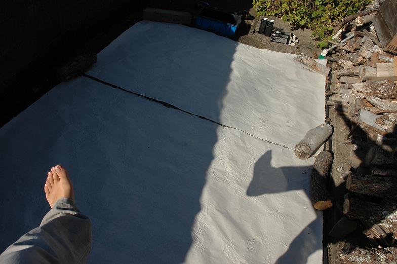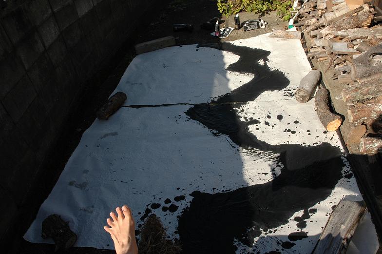 Spreading Heizaburo's handmade paper, two sheets ( one size is about 200cm x 150cm ), that I got on the previous day.