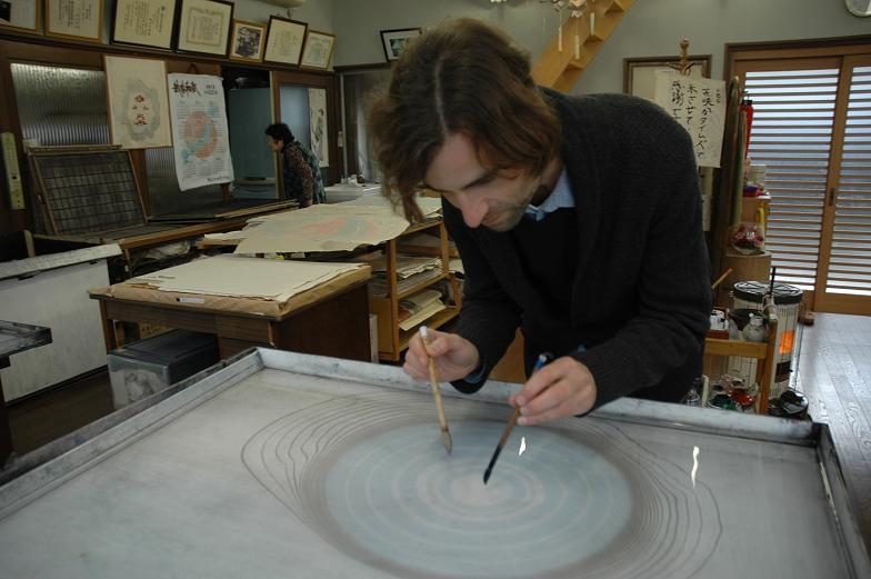 During his suminagashi, marbling workshop with Mr & Ms. Fukuda.