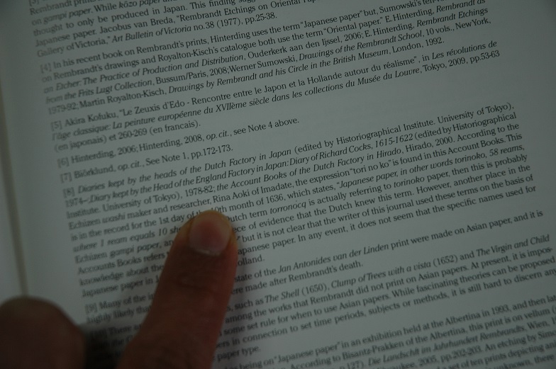 According to the Echizen washi maker and researcher, Rina Aoki of Imadate, the expression " tori no ko " is found in this Account Books. This is in the record for the 1st day of the 10th month of 1636, which states, " Japanese paper, in other words torinoko, 58 reams, where 1 ream equals 10 sheets ". If the Dutch term torronocq is actually referring to torinoko paper, then this is probably Echizen gampi paper, and this is one piece of evidence that the Dutch knew this term. ........................