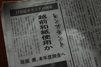 Recently an article was on the local newspaper. It said that Fukui Prefecture government had started their research about paper that Rembrandt used for his etching in the 17th century feeling almost sure that the paper was made in Echizen Washi Village.