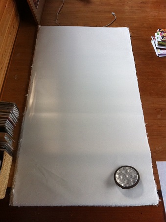 I purchased the largest paper made at Mr. Takeuchi's paper studio using Japanese kozo 100%. The size is 145cm x 77cm. There were only 60 sheets left at his studio, so I bought them all. Very precious paper.....