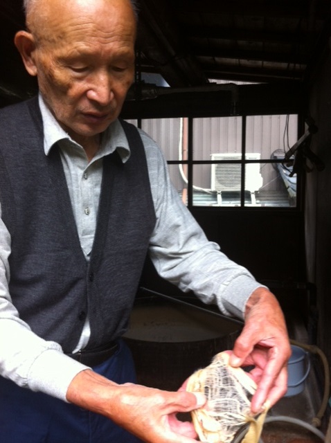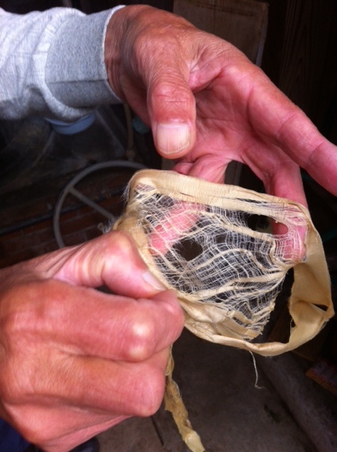 Ichibei is explaining how long and soft fiber of kozo is.