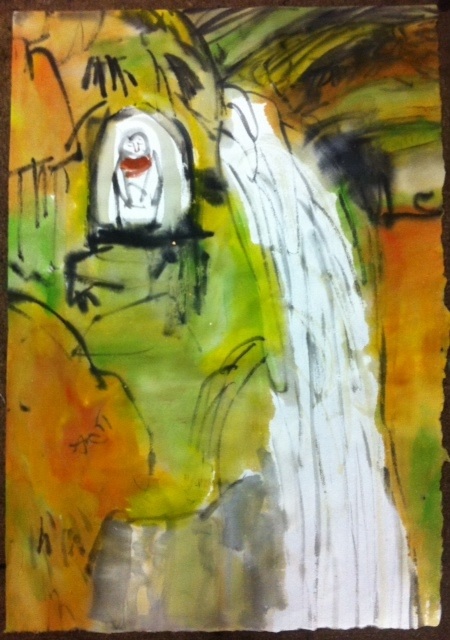 On my show I put each name of the washi makers next to my work explaining who made the paper I used and what materials the paper was made from. It was very rare to see makers' names in the title, so some people didn't really get it why there were many different individual names. Well, I'm sure most people don't really know there are so many kinds of handmade paper only from this village and that each has unique quality for brush work. I wanted to focus on the makers and paper itself on this show. So, when I paint, I try to remember whose paper I'm going to use. And now I wonder ; do I really need to do that ? What am I doing this for while no one pays attention to it very much ....?