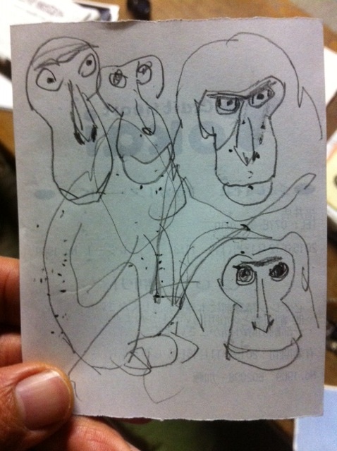 Simple sketches from photos. And from what I saw this year. There have been many monkeys all through year and one of them broke my tiles on the roof !! But I got really excited to run after them. They were so cool to run away into the mountains.