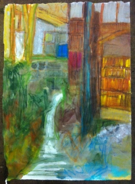 Using pastels and water color ink on washi.