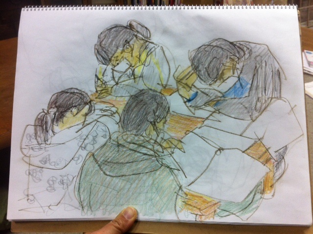 They keep visiting me to study together these days. Their entrance exams are starting soon. Usually I teach in person, one by one, but I try to offer as many opportunities as possible to study together so that they can ask me questions any time. I charge 500 yen for one person to join ! And what I do for myself except for answering questions is also to study something, or read books, prepare wood for stove, or to sketch or paint. I must be a strange teacher to them, but it's good for them to know adults are not always doing perfect.