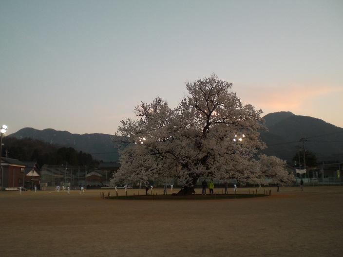 This sakura tree stands right in the middle of school playground, Ajimano elementary school. You can see students play baseball behind there. People love this sakura tree. ( five minutes by bike to get there. )