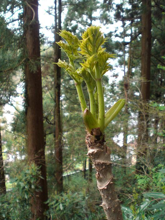 During lunch break I went for a quick check in the mountain and found precious `tara-no-me` ( the first picture ) and `zenmai`! I didn't have enough time today and need to come back again. Soon, bamboo shoots are coming up.