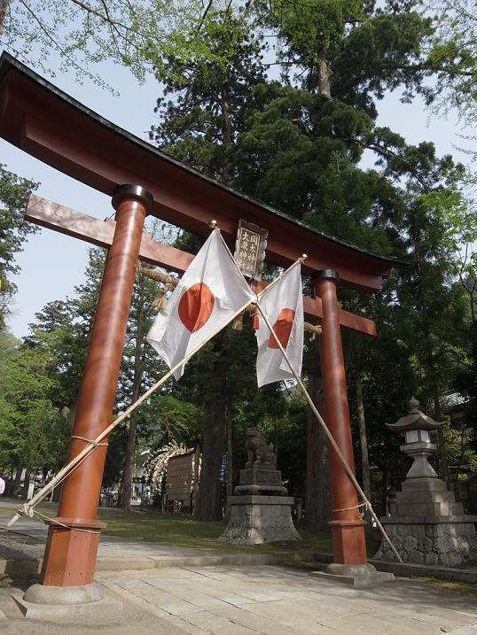 This is our national flag at the entrance of Okamoto Otaki Shrine.