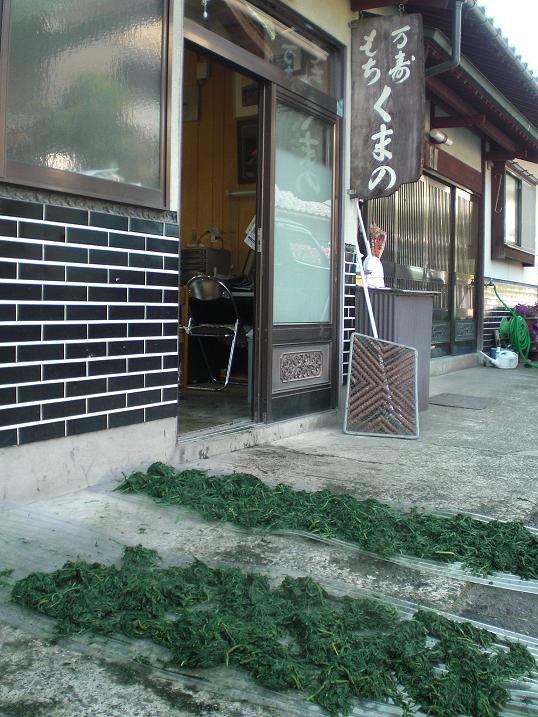 I found them still drying mugwort which will be used for Japanese sweets. Usually at supermarket people use imported mugwort....