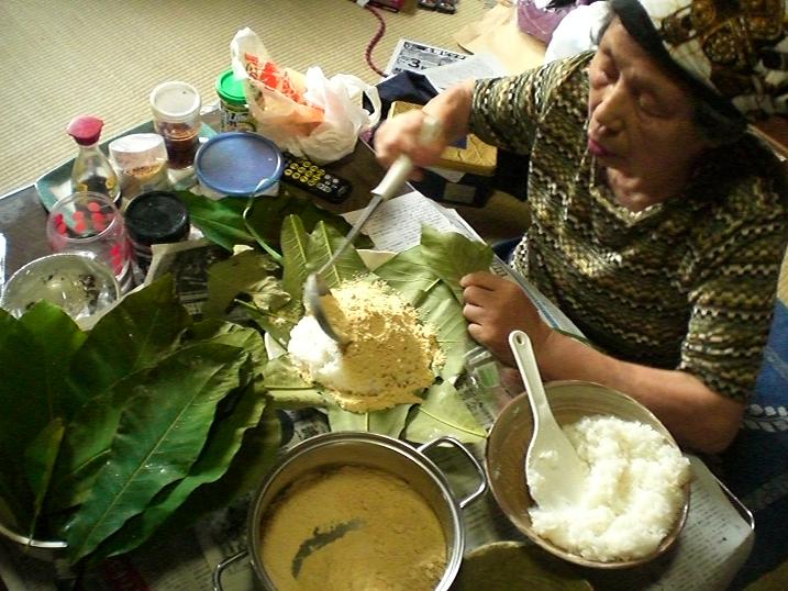 Fusae-san, 82, is making the meal with the leaves I took.
