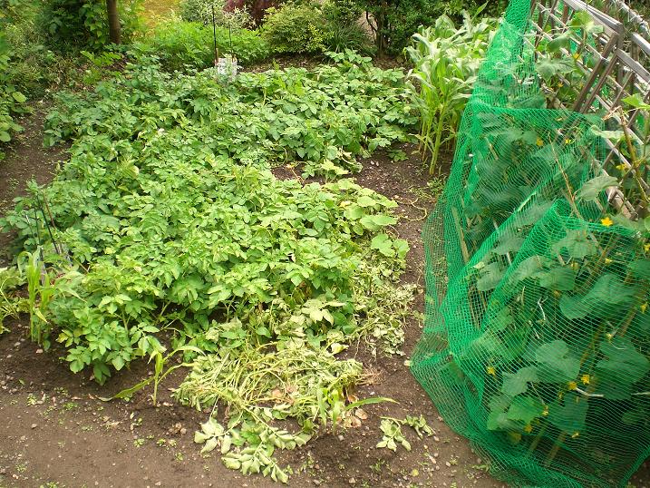 Monkey came to ruin my neighbor's potatos in the vegetable garden ( bottom left )!