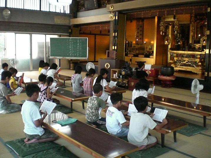 After the excercise at Okamoto Otaki Shrine, some of the children went to visit a temple called ` Enjyo-ji ` to have an activity there.
