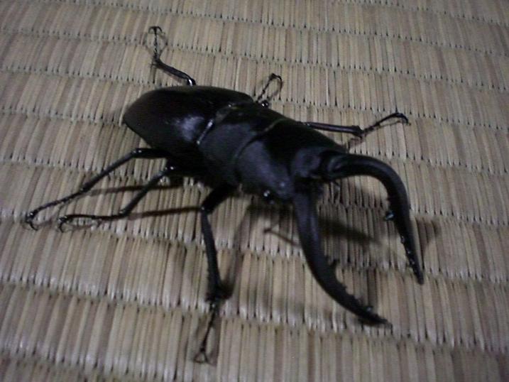 The first one is ` A stag beetle on the tatami mat`, the Japanese traditional rush mat.
