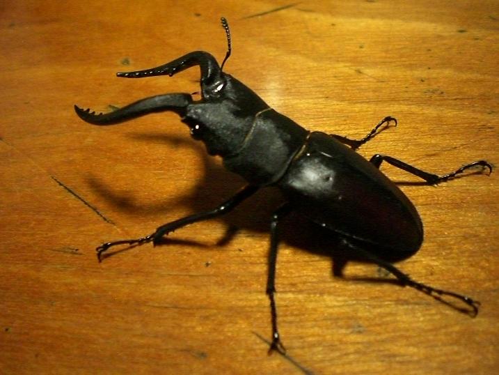 A stag beetle was walking down the street in front of Okamot Otaki Shrine at night!!!