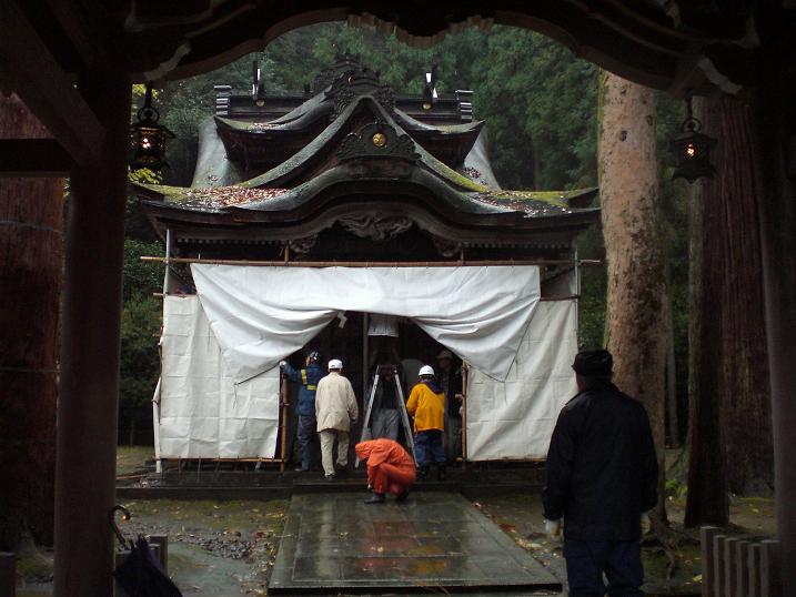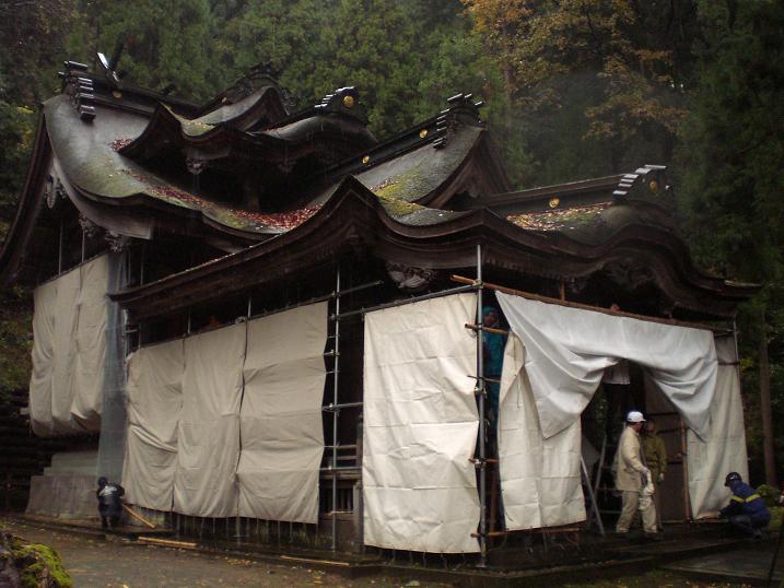 Our local people, mainly men, were covering the shrine with the cloth, which is to protect it from snow.
