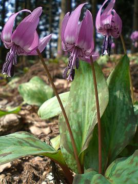 While making paper, my hiking member ( the club only has me and the other ) invited me to go see ` dogtooth violet ` ( I doubt its name in English because it sounds really strange ! ) , katakuri in Japanese in a mountain. On the radio I'd been hearing about the news of blooming flowers under this warm weather, so I decided to go for a short period ( the first picture ).
