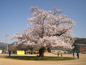 It takes about 15 min to get there from here at Udatsu Museum by bike. The tree stands right in the middle of the playground. It's being well known in the past few years after a magazine put its information with a beautiful sakura picture and also a band musician made their CD album using a picture of this sakura tree on the cover.