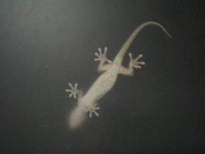 Recently I often see them on the window eating small bugs. It's called ` ya-mo-ri ` in Japanese, ya for house, mori for protecting, so, we should welcome them for our good luck.