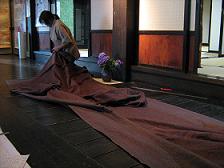 Echizen Washi has both handmade and machinemade paper. Its production quantity for the handmade is NO. 1 in Japan. But today it's about the machinemade. At Udatsu was used cloth for papermaking by machine and I happened to think of using part of it for my caligraphy use ( do you understand my English ? ).