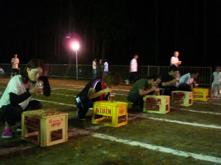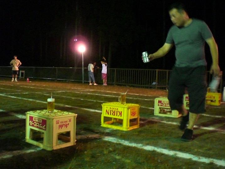 Drinking beer with a straw...... which is very difficult and makes people drunk easily..... , then you have to run..... but for some meters to the goal. just for fun.