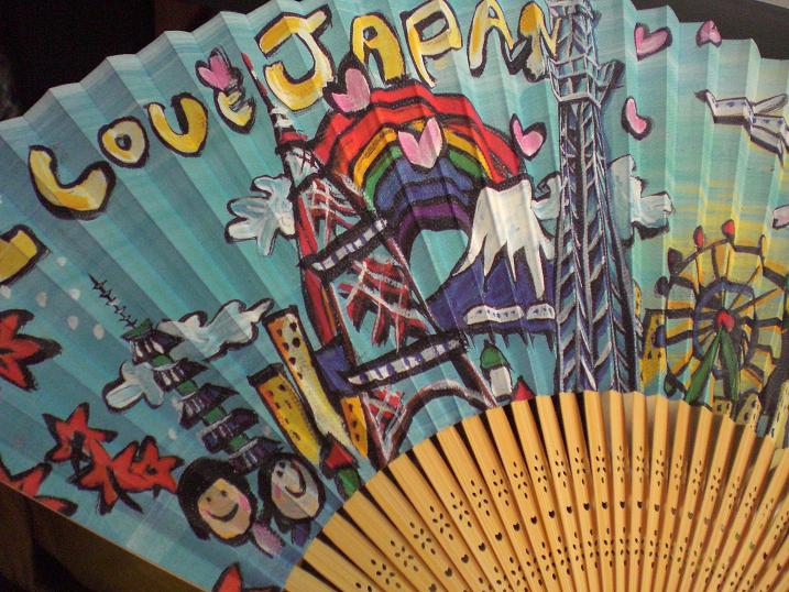 One of my friends has sent me a fan designed with ` Japan`. The cost for the fan will be partly donated to the children in the disaster area in Tohoku. We can use this fan without using any electric energy to have a nice breeze !
