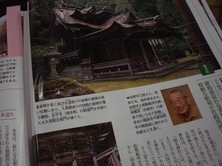 A magazine called ` sa-ra-i ` is now available at book shops in Japan. In it Okamoto Otaki Shrine is introduced for its beautiful architecture.