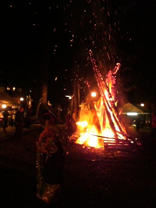 It was yesterday that people danced around the fire. It's so fun. Our local gods came down to the Okamoto Otaki Shrine the day before yesterday at night, and they will go back to the top of the mountain tonight, sent on mikoshi, the portable shrine. carried by local people. I love this festival !