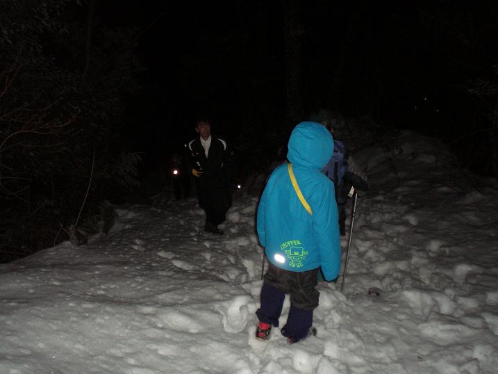 Right after the New Year's Day started at midnight, local people in Echizen Washi Village began to climb up the mountain in the backyard of the Okamoto Otaki Shrine to pray for the god and the paper goddess.