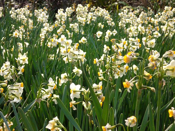 Fukui has a beautiful area with lots of narcissuses. It's really rare to see such a lot of narcissuses along the ocean, in winter time ! This month is the best season to see.